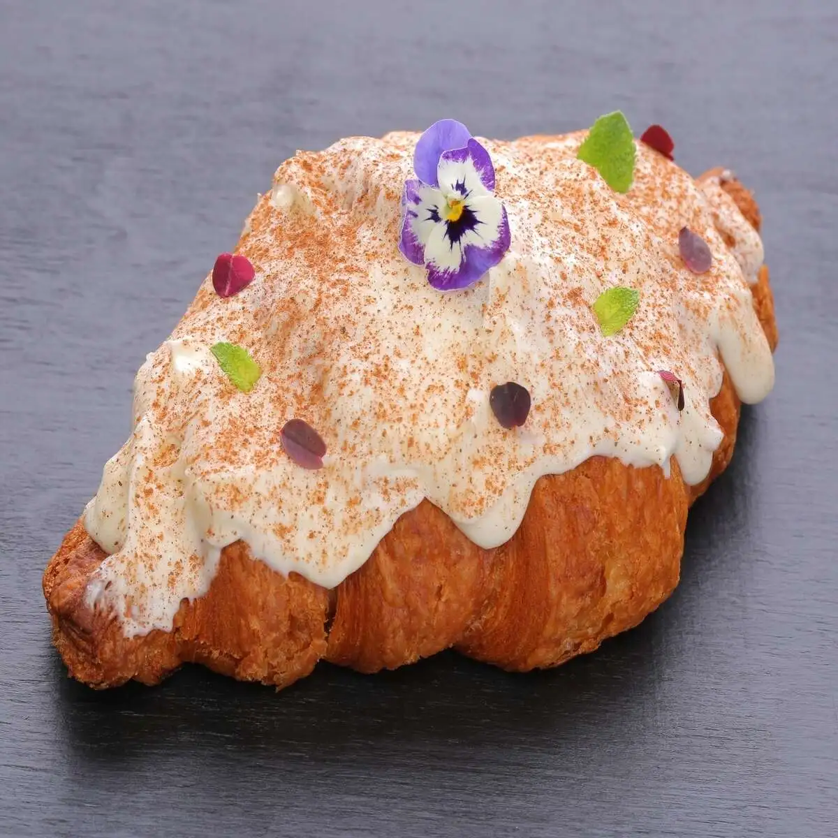 Нежный круассан из нашей специальной коллекции: воздушное тесто, крем-чиз, сезонные фрукты и ароматная фисташка